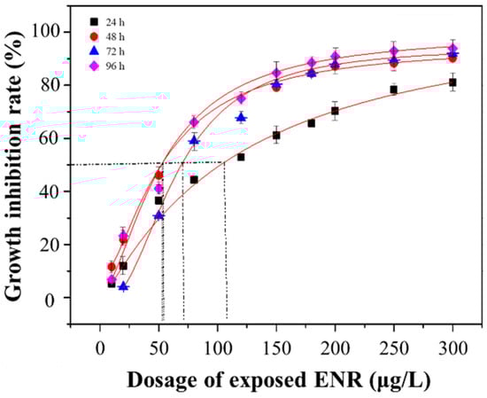 The growth inhibition rate of algae under different exposure dosages of ENR.