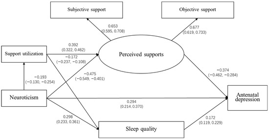 APA StyleChen, J., Sun, M., Huang, C., Xiao, J., Tang, S., & Chen, Q. (2022). Pathways from Neuroticism, Social Support, and Sleep Quality to Antenatal Depression during the Third Trimester of Pregnancy. International Journal of Environmental Research and Public Health, 19(9), 5602. https://doi.org/10.3390/ijerph19095602