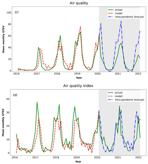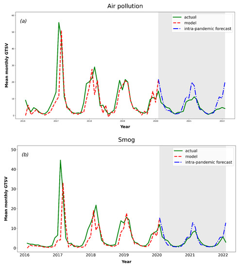 Thus, it is important to investigate the changes in Poles’ air pollution information-seeking behaviour during the COVID-19 pandemic—even more so as there is a possible causative link between higher air pollution levels and higher COVID-19 spread. Additionally, it is of great interest to determine if Poles’ interest in air pollution during the intra-pandemic period changed significantly in comparison to the theoretically forecasted (modelled) interest in air pollution for if there was no outbreak of COVID-19.