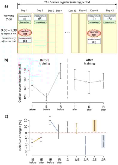 - the second measurement of cortisol concentration immediately after the exertion (E); and