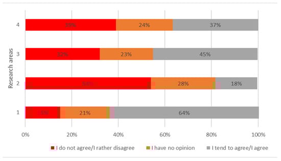 - The dependence on the variable “workplace” was statistically significant in only one area: “Readiness to take health risks when caring for people suffering from infectious diseases or exposed to hazardous substances”, where respondents employed in research units expressed their consent much more often (N = 70, 64%, I tend to agree/agree). The relationship between the respondents’ workplace and their willingness to take health risks while caring for people suffering from infectious diseases or exposed to dangerous substances was statistically highly significant (p ≤ 0.000).