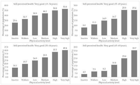 The following supporting information can be downloaded at: https://www.mdpi.com/article/10.3390/ijerph19095656/s1, Table S1: Associations between the level of physical activity and self-perceived health by age groups in the Spanish population through the ENSE 2017.