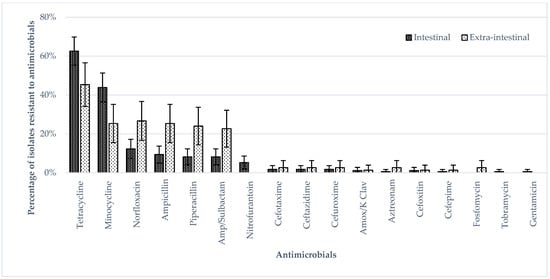 - Food and Agriculture Organization of the United Nations. Monitoring and surveillance of antimicrobial resistance in bacteria from healthy food animals intended for consumption. In Regional Antimicrobial Resistance Monitoring and Surveillance Guidelines; Food and Agriculture Organization of the United Nations: Bangkok, Thailand, 2019; Volume 1. [Google Scholar]