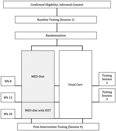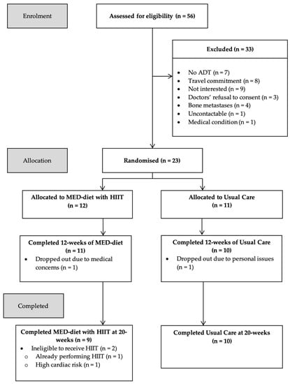 Chicago/Turabian StyleBaguley, Brenton J., Kirsten Adlard, David Jenkins, Olivia R. L. Wright, and Tina L. Skinner. 2022. "Mediterranean Style Dietary Pattern with High Intensity Interval Training in Men with Prostate Cancer Treated with Androgen Deprivation Therapy: A Pilot Randomised Control Trial" International Journal of Environmental Research and Public Health 19, no. 9: 5709. https://doi.org/10.3390/ijerph19095709