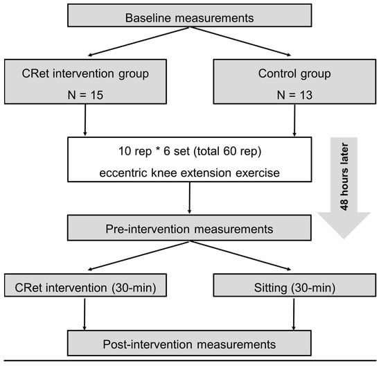 APA StyleNakamura, M., Sato, S., Kiyono, R., Yahata, K., Yoshida, R., Kasahara, K., & Konrad, A. (2022). The Effect of Capacitive and Resistive Electric Transfer Intervention on Delayed-Onset Muscle Soreness Induced by Eccentric Exercise. International Journal of Environmental Research and Public Health, 19(9), 5723. https://doi.org/10.3390/ijerph19095723