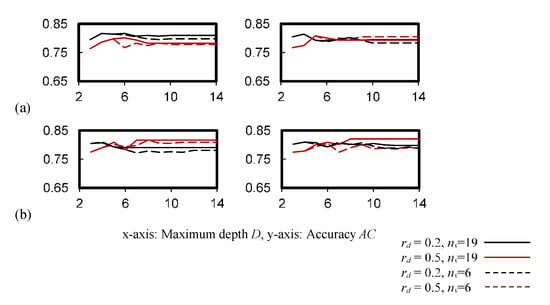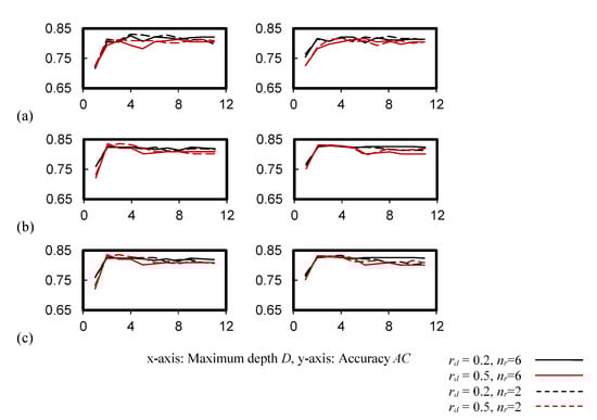 | Decision tree | rd D ns nr Impurity | 0.2–0.5 3, 4, …, 14 3, 4, …, 19 2, 3, …, 6 GI, EI | 0.805–0.829 | 0.714–0.838 | 0.2 4 3 2 EI |