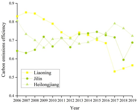 CO2 emission efficiency in northeast China from 2006 to 2019.