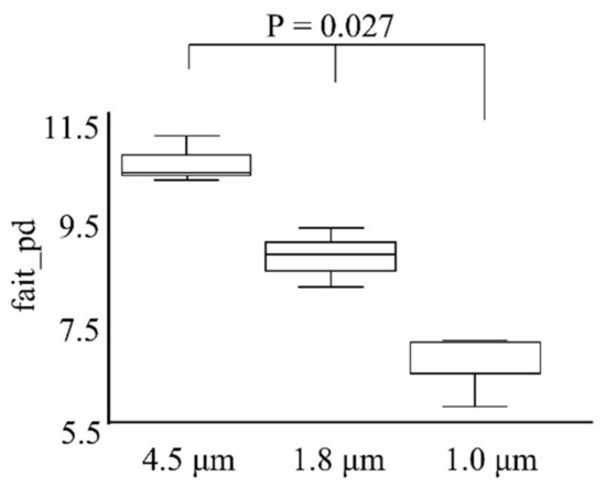 Metagenomic data analysis was performed with QIIME2, with a comparison of α-diversity, a statistical index for phylogenetic diversity, shown in Figure 6. A larger index indicates the presence of more diverse bacteria. These results indicate that the α-diversity of microflora in aerosol particles tended to decrease as the pore size of the MMDs decreased.