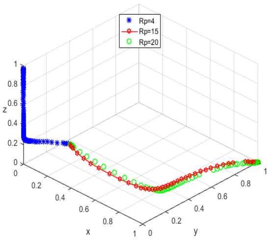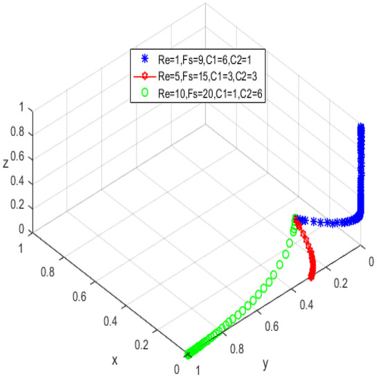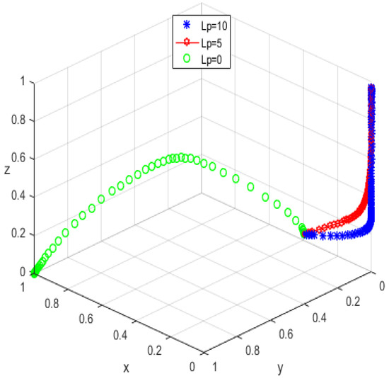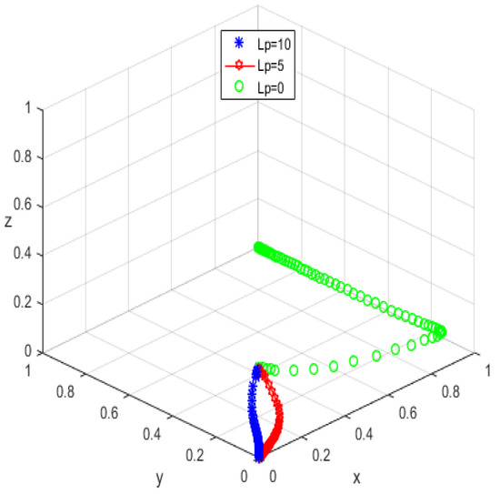MATLAB was used to simulate the evolutionary game process of the three-party system and numerical simulations were carried out for , , and to represent the evolutionary game behavior of the three-party system more clearly and to test the correctness of the game model.