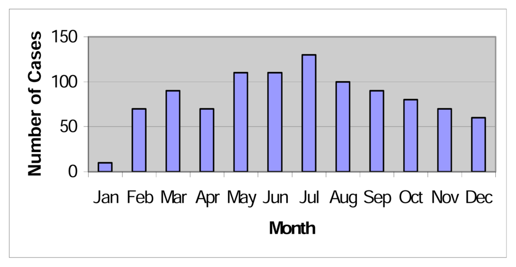 State of Louisiana campylobacter average annual cases by seasonal distribution for years 1988–2001(LDHH 2001).