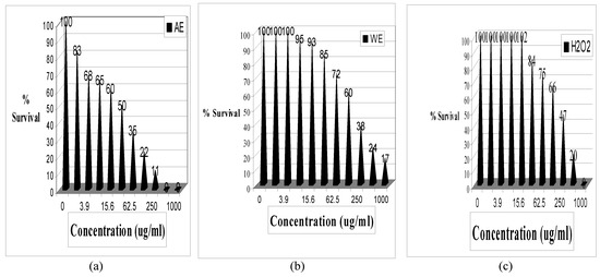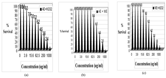 2 as an oxidative stressor. Measurement of cell survival under various concentrations and mixtures was conducted using standard cell culture techniques, exposure protocols in 96 well plates and Fluorospectrosphotometry. Following cellular growth to 90% confluencey, exposure to water (WE) and ethanol (AE) extracts of