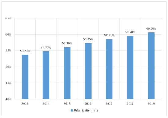 Annual urbanization rate in China (2013–2019). Data Source: National Statistics Bureau.