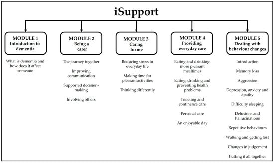 - World Health Organization. iSupport Version 1.0. Adaptation and Implementation Guide; World Health Organization: Geneva, Switzerland, 2017. [Google Scholar]