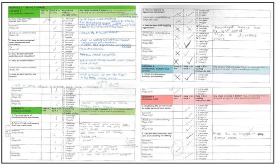- Annotations on the iSupport pdf handbook (young carer and professionals). Participants were told that these annotations could be regarding all aspects to iSupport including content, structure, design, or language (the iSupport handbook is free to download at https://www.who.int/publications/i/item/9789241515863 (accessed on 21 December 2022))