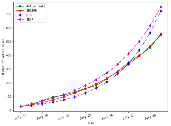 It can be seen from Figure 8 that the SEAIHR model and SEIR model fit the real data more accurately. It is because with the increase of prevention and control intensity and the improvement of medical detection means, the SEAIHR model can be approximated by the traditional SEIR model.