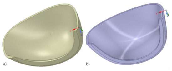 Toecap geometries reconstructed by means of 3D scanning: (a) type A—polymeric toecaps, (b) type B—steel toecaps.
