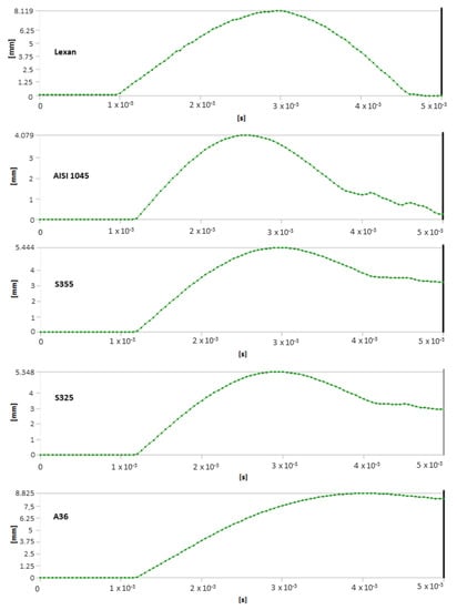 Deformation-over-time diagrams for the studied models.