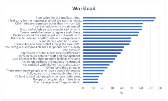 In this study, a personal information form, workload questionnaires and work stress questionnaires were used to collect the data [32]. In the survey, which was conducted for the first time in Turkey to examine the workload and stress of nursing home workers during the COVID-19 pandemic, two questionnaires designed by the Health Care and Welfare Care Professional Trade Association operating in Germany were used for institutions providing institutional care. At the stage when this research was planned, there was no measurement tool that was adapted to Turkish and for which the validity and reliability had been tested for assessing the individual perceptions of workload level of the employees of nursing homes and elderly care rehabilitation centers, so the scale used for researching German care institutions was translated into Turkish by two translators. The questionnaires were first translated into Turkish by the author of the study, who is a native German speaker who holds dual Turkish and German citizenship, and this translation was compared with the original questionnaire. By comparing the texts of the original German questionnaire and the translated questionnaire, the researchers and translators were able to agree on common statements. The Turkish translation of the questionnaire was evaluated by all authors of the study. Finally, the translated Turkish questionnaire was applied to a group working in a nursing home, which was not included in the sample of the study. According to the feedback obtained from the pilot questionnaire, minor word corrections were made in the final form of the questionnaire, and this was used as a data collection tool in the study. One of the questionnaires contained questions that detected workload and the other determined stress. Data were collected on quantitative and qualitative work stress, job organization, the social work environment, nonoccupational status and the physical and mental/mental status of nursing home workers through questions for which the scientific and practical importance has been proven. The only change we made to the questions is that a phrase such as “Compare with before the COVID-19 pandemic...” was always added to the beginning of the questions. Because of the lack of empirical data on prepandemic workload and work-related stress, this addition to the questions aimed to compare the current (pandemic) situation with the prepandemic status. The workload questionnaire consisted of 23 items. The questionnaire had five main sub-scales: quantitative workload, qualitative workload, work organization, social work environment and nonwork situation.