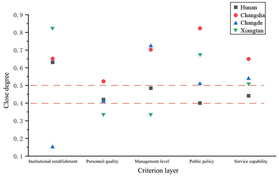 Result of closer degree of criterion layer of each city in Hunan Province.