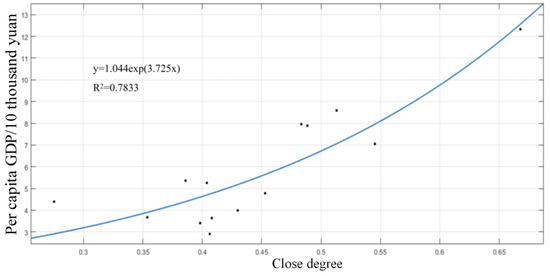 Relationship between per capita GDP and closer degree of grassroots water services in Hunan Province.