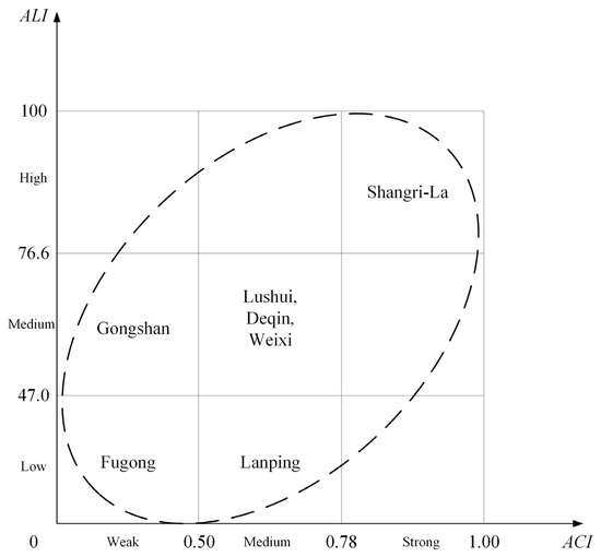 We divided the ACI and ALI values into three intervals and then through the combination of the two, there will be nine possibilities. In addition to the “strong-high” combination, the remaining eight combinations will reflect different adaptation problems. Studying these problems and their formation mechanism is of great significance and is the basis for solving the problem.