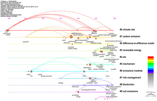 | 7 | 13 | 0.982 | 2018 | Climate change (40.89, 1.0 × 10−4); climate risk (40.79, 1.0 × 10−4); pressure test (21.58, 1.0 × 10−4); ecological civilization (21.24, 1.0 × 10−4); financial stability (14.97, 0.001) | |