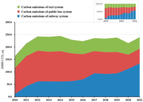 Carbon emissions of Shenzhen public transportation system from 2010 to 2021.
