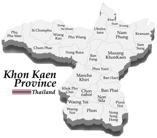 Map of Khon Kaen province, Thailand.