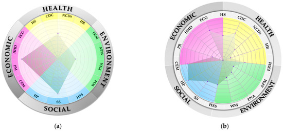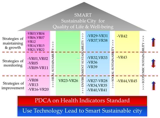STD was first presented in World Conservation Strategy, which was jointly published by the International Union for Conservation of Nature (IUCN), the United Nations Environment Program (UNEP) and the World Wildlife Fund (WWF) in 1980 [1]. As given in the text, “Sustainable development is development that meets the needs of the prevention without compromising the ability of future generations to meet their own needs” [2]. Later, in 2000, the United Nations (UN) proposed the eight Millennium Development Goals (MDGs) to develop quality of life (QoL): 1. to eliminate extreme poverty and hunger; 2. to achieve universal primary education; 3. to promote gender equality and empower women; 4. to reduce child mortality; 5. to promote maternal health; 6. to fight malaria, HIV/AIDS and other diseases; 7. to promote environmental sustainability; 8. to develop a universal partnership for development. This was the official beginning of the integration of health and sustainability universally [3]. However, the MDGs were ended in 2015; in their place, the UN established “the Sustainable Development Goals (SDGs)” as a new target framework to drive the global STD until August 2030 (a period of 15 years). The SDGs were developed based on three dimensions of sustainability: the economic dimension (ECDm), social dimension (SODm) and environment dimension (ENDm), which all encompass 17 goals [4]. From the SDGs, the researchers have integrated STD into various dimensions of social studies such as education, business, tourism, politics, culture and locality development. Sustainability is an ideal state when setting goals towards STD, and it should be reflected in an international policy and strategy for development to fulfill basic human needs, stimulate economic growth and promote environmental preservation. STD is adjustable, depending on the goals and contexts of cities. In general, sustainability indices measure efficiency in sustainability assessment and provide information on the effectiveness, weaknesses and strengths of a city’s administration. The data enable a city to direct budget for STD in accordance with the problems and requirements at the time.