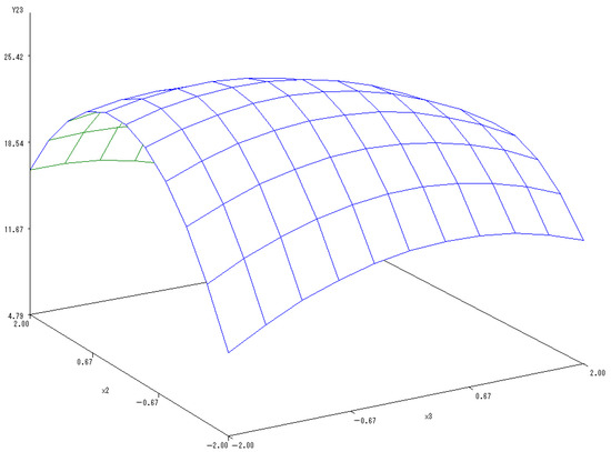 Y(2,3) = 25.1389 − 0.5169X2 − 1.0178X3 − 2.5473X22 − 0.935X2X3 − 0.8365X32.