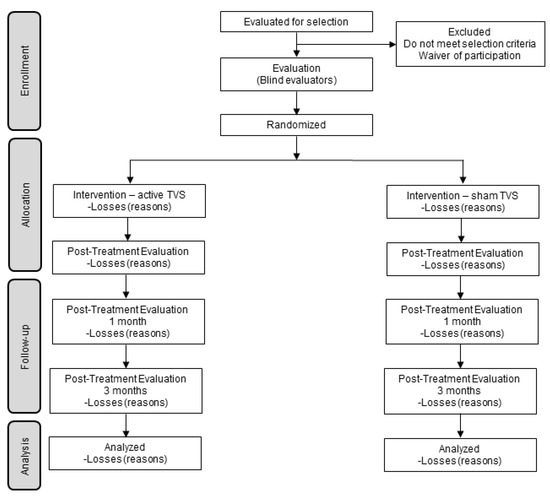 All statistical analyses will be performed using the statistical software program STATA v16. A descriptive analysis of the main variables of the study will be carried out using central tendency statistics (mean, median, mode, etc.) and dispersion statistics (standard deviation, variance, range, etc.). The baseline variables will be reviewed to evaluate the comparability of the groups. The primary outcome measure was the average pain VAS measured at 4 weeks after randomization. TVS was compared with TVS sham using an analysis of covariance (ANCOVA) model that included a TVS sham group as the factor of interest and the corresponding baseline average pain VAS as a covariate. The primary analyses included all available data from all randomized participants. Missing data were accommodated using the technique of multiple imputations. Statistical analyses will be performed according to the intention to treat principle. An alpha level of 0.05 will be accepted as significant. Results will be reported as a minimum between-group mean squared differences and 95% confidence intervals from baseline to end of follow-up.