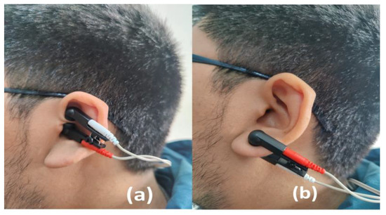Transcutaneous Vagal Stimulation: TVS will be applied, in line with other research [15,16,18,41], through a portable TensMed S82 electrostimulation device (Enraf Nonius). The auricular electrode clips (Auricular Clips, Body Clock Health Care Ltd., London, UK) will be placed for active condition in the left ear (see Figure 2)., specifically in the auricular cymba concha, given that stimulation of the left vagus nerve has not been shown to cause abnormal activity in the heart [42]. That stimulation of the right vagus nerve could affect the heart’s activity as it has direct efferent fibres with projection to this organ [43]. The device will be programmed with a biphasic square current at an intensity that produces a clear tingling sensation that is neither uncomfortable nor painful [41], with pulses of 300 microseconds, at 25 Hertz, the stimulus will be present for 30 s and will be followed by a 30-s rest period [15,18]. TVS will be placed and programmed before each exercise session being used during the whole session. In this vein, it is important to note that a systematic review showed that TVS has been shown to be safe and tolerable in multiple populations [44] with minimal side effects such as slight itching and redness of the skin [42]. The device will be configured with the same parameters and intensity described above for sham TVS condition. However, the device will be located in the left earlobe [45] (see Figure 2). This area does not have vagal innervation, and more importantly, it has been proven that it does not produce any activation in the cortex or brain stem [46].