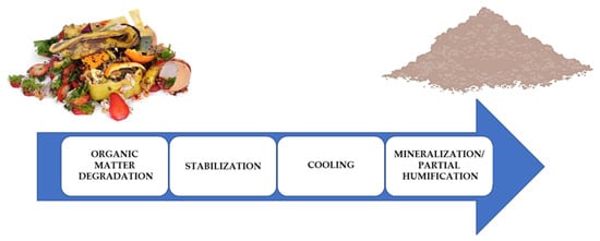 - Cesaro, A.; Conte, A.; Belgiorno, V.; Siciliano, A.; Guida, M. The Evolution of Compost Stability and Maturity during the Full-Scale Treatment of the Organic Fraction of Municipal Solid Waste. J. Environ. Manag. 2019, 232, 264–270. [Google Scholar] [CrossRef]