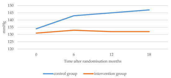 Evolution of systolic blood pressure in the two groups in the RCT study.