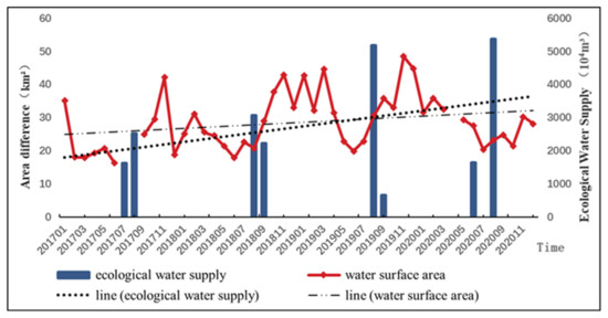 3.2. Seasonal Variation Characteristics of Water Surface of Lakes and Its Response to Ecological Water Supply