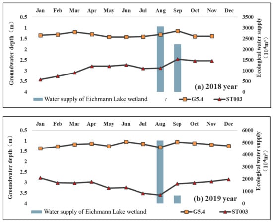 3.3. Dynamic Variation Characteristics of Groundwater Level and Its Response to Ecological Water Supply