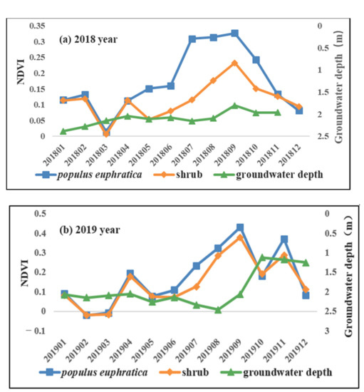 3.4. Response Relationship between Natural Vegetation and Seasonal Variation of Groundwater Level