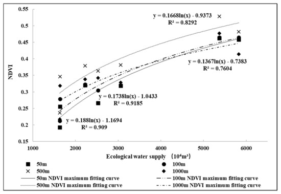 3.5. Response Relationship between Natural Vegetation and Ecological Water Supply