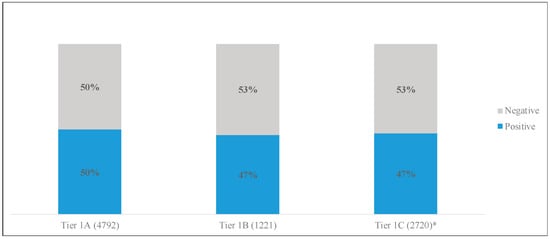 Positivity of tweets by vaccination tier. * For these analyses Tier 1C includes data from 15–31 March 2021.