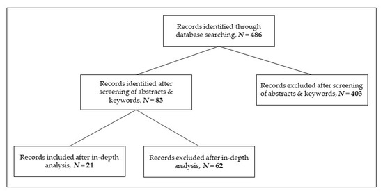 Due to the volume of records which were found in the search, the documents were analyzed in a two-step process. The first step was a comprehensive screening of the papers’ abstracts. The second step involved an in-depth analysis of the content of the remaining records identified through the abstract screening process. Therefore, when abiding by strict rules and consistently applying the same inclusion and exclusion criteria, this method can be utilized and was hence chosen [50]. To decide if an abstract was to be excluded, the following questions had to be answered with “yes” (for inclusion), “no” (for exclusion), or “unsure”: