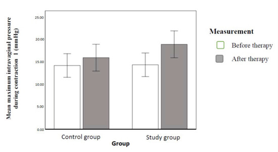| Mean maximum intravaginal pressure during contraction 1 (mmHg) | 14.32 | 11.65 | 8.29 | 1.67 | 3.58 | 4.1 | 42.6 | 0.81 | 0.066 |