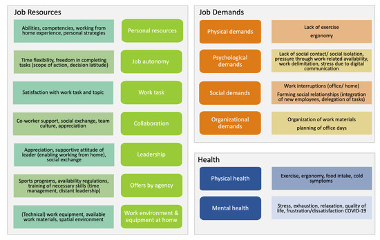 In the following section, the results of the conducted interviews are described in detail. Figure 1 shows the main categories and subcategories imbedded in the JD-R model.