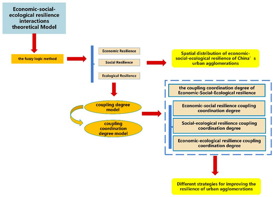 This paper is based on the economic, social and ecological data of Chinese cities in 2019, and the study allows an objective analysis of the development of urban agglomerations as COVID-19 did not appear until the end of 2019. The data were obtained from the China Urban Statistical Yearbook and the statistical data of provinces and cities in 2019. The logical framework of the study is shown in Figure 3.