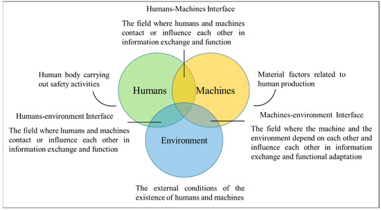 The environment in ISE often includes the natural environment in which the humans and machines are located, such as humidity, temperature, and toxicity, which can be understood as the characteristics of the external conditions in the process of the human operation of the machine. In addition, it also includes the safety culture, safety atmosphere in the production system, and safety spirit. From a micro level, it can be understood as all environments that hinder or promote the integration of humans and machines. The psychological environment that affects human thinking is also included in this category.