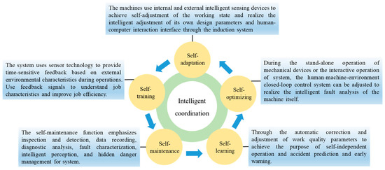 From the definition and characteristics of ISE, the basic tasks of ISE can be obtained as follows: under the premise of giving the safety and environmental concept the leading role, the current emerging information technology tools are used to optimize the information flow dimension among humans, machines, and the environment to improve the intelligent coordination function of the system and to integrate it into all aspects of system analysis to achieve intrinsic safety and cleaner production. From the perspective of ISE practice, it pays more attention to the efficiency of human-computer interaction, the accuracy of system information transmission, and the interactive form of functional matching between elements. The coordination method and specific interpretation are shown in Figure 9.