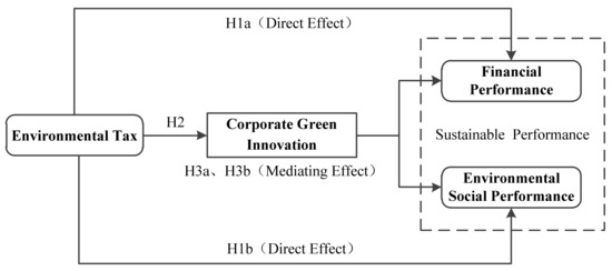 Based on the above views, we believe that the impact of environmental tax on corporate financial performance and environmental social performance has a transmission mechanism, in which green innovation plays a mediating role. Therefore, we propose the following hypotheses: