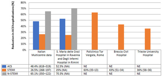 Some observational studies described a significant reduction (p-value < 0.05) of acute coronary syndrome (ACS) hospitalizations (Figure 2) with delays in urgent care and an increased rate of arrhythmic and mechanical complications.