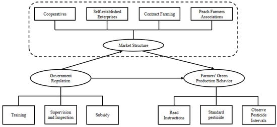 Government regulation can affect peach farmers’ green production behaviors through the market structure. The market structure plays a partial intermediary role in the way government regulation affects peach farmers’ green production behavior.