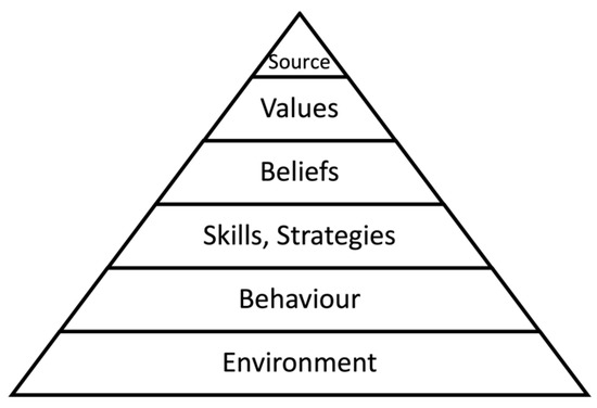 This concept is based on Gregory Bateson’s theory of the learning process [37]. It was used in the discipline of personal character development by Robert Dilts [38]. For the needs of this training, Kutschera further refined this concept and named it logical categories of learning [39,40] (see Figure 3). The levels below are influenced more strongly the higher the level at which individuals learn. During the training, all these levels will be addressed.