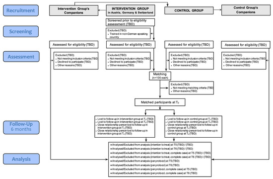 The planned cohort research, which evaluates a training program with training locations in Austria, Germany, and Switzerland, has a non-randomised, longitudinal, prospective design. The training program is commercially available on the market; hence, a study design without randomisation was used to address the research objectives without interfering with the training provider’s business practices. On the first day of the training programme, the individuals are recruited to participate in this study. For the further recruiting, a snowball sampling technique is used. Training participants will, therefore, receive a folder with detailed instructions on the assessment and on how to forward the other questionnaires and informed consent sheets contained in the folder. The control group is recruited via training participants’ companions to avoid direct contact between the control and intervention group. The control group is matched with the intervention group by gender, age (±5 years), employment status (employed full-time/employed part-time/unemployed/in school/on educational leave/on maternity or paternity leave/retired), family status (child or children/no children), relationship status (single/in a permanent relationship/undecided), perceived stress (±3 points on the Perceived Stress Scale (PSS)-10 scale), daily stressors (±30 points on a daily hassles questionnaire) and stressful life events within the last 3 months (yes/no). If a suitable sample size cannot be attained, the matching is conducted in steps, starting with 7 matching criteria and down to 4 criteria. Members of the control group who have fewer than four matching attributes are not included in the research. To guarantee a large enough matched control group, the training participant’s companion is asked to recruit two individuals that fit the matching criteria as well as possible.